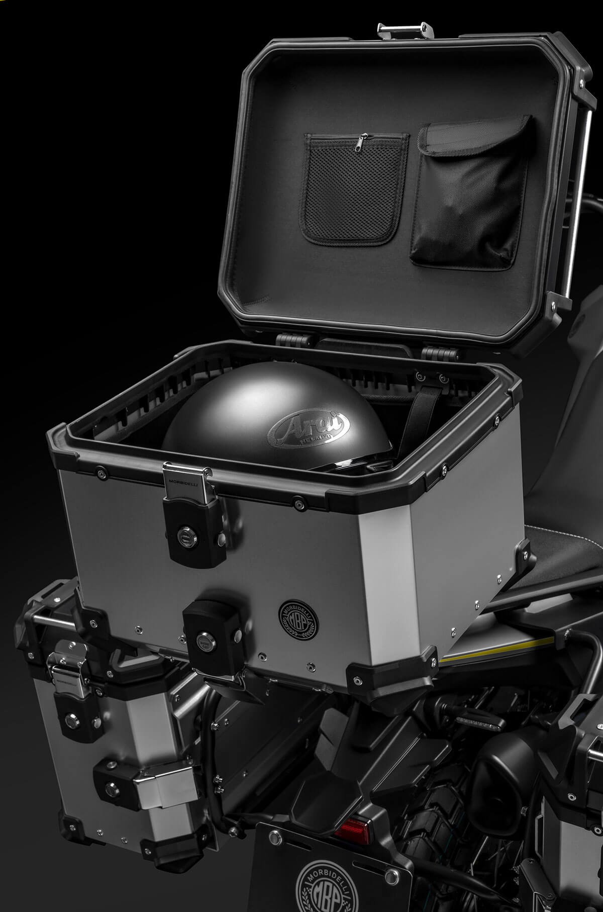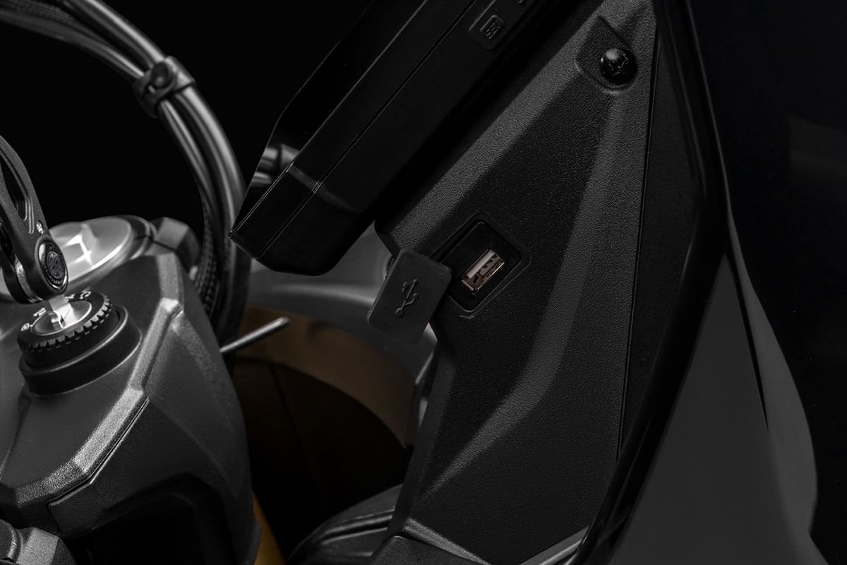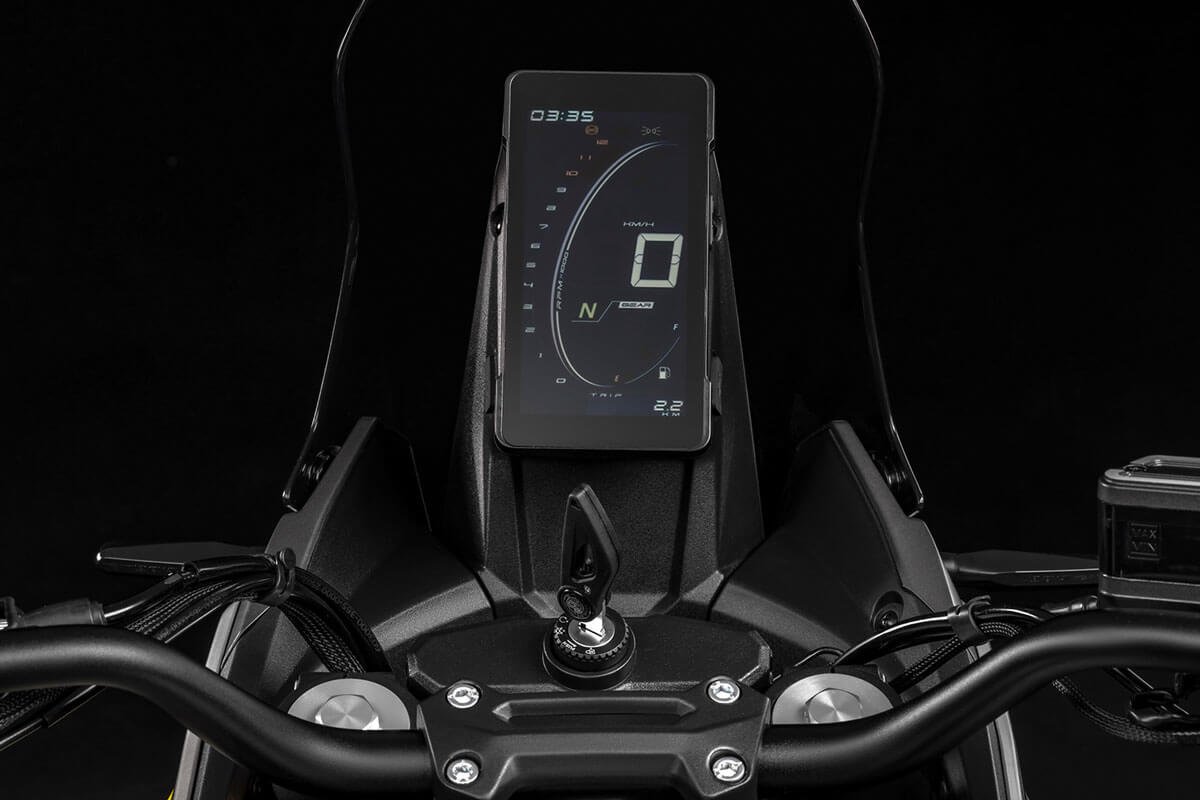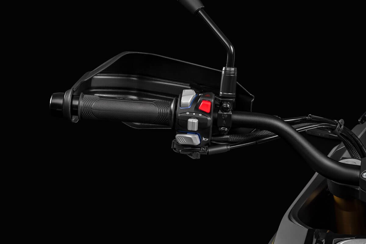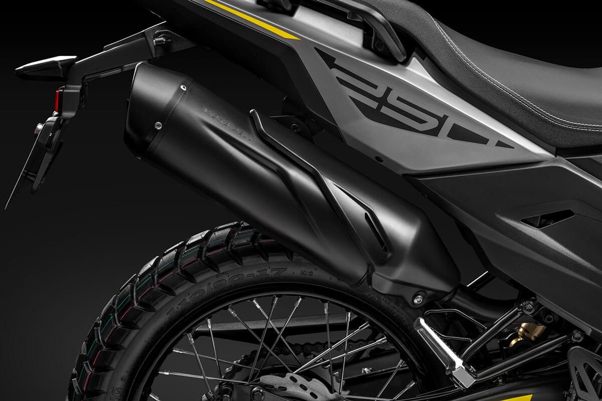 With a 41 mm inverted fork, adjustable rear suspension, spoked wheels and dual-purpose tires, it offers control and comfort even in the toughest conditions. Ventilated disc brakes with ABS and an 820 mm seat height ensure safety and ergonomics for riders of all sizes. The vertical LCD display, rally-inspired, provides clear information at all times. Completing the setup are a USB port, backlit handlebar controls, and a full LED system with the distinctive X-Stack signature lighting. For long trips, rigid panniers or waterproof soft bags are available, compatible with the optional rear rack.