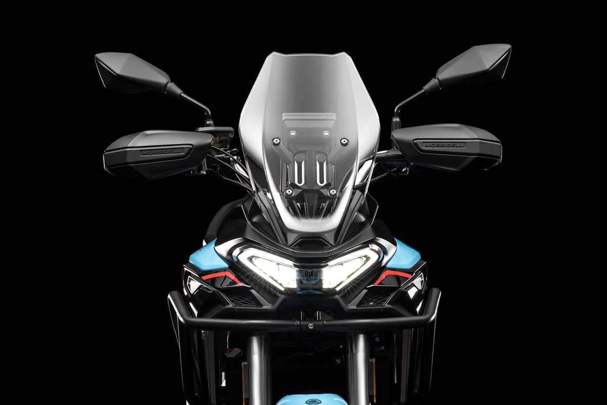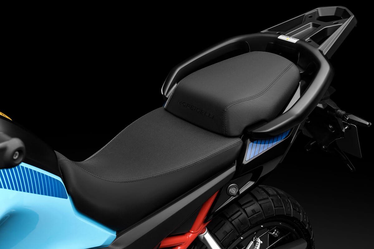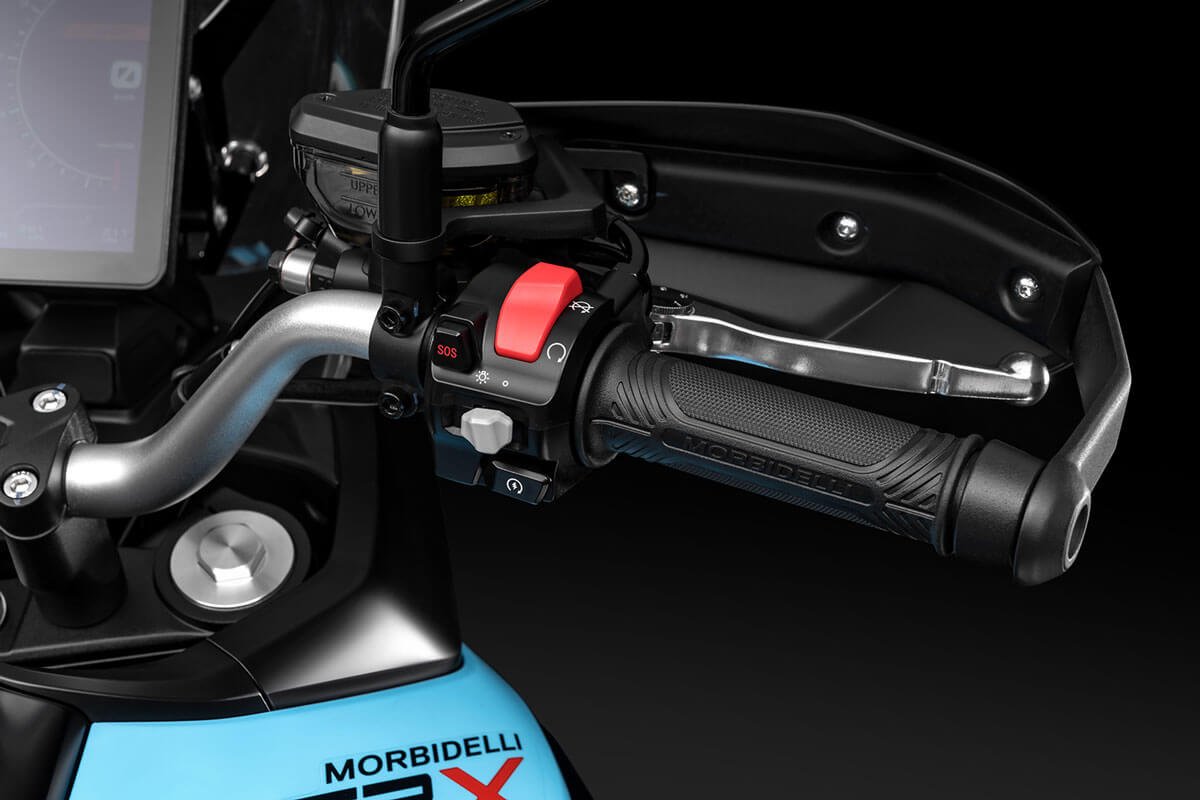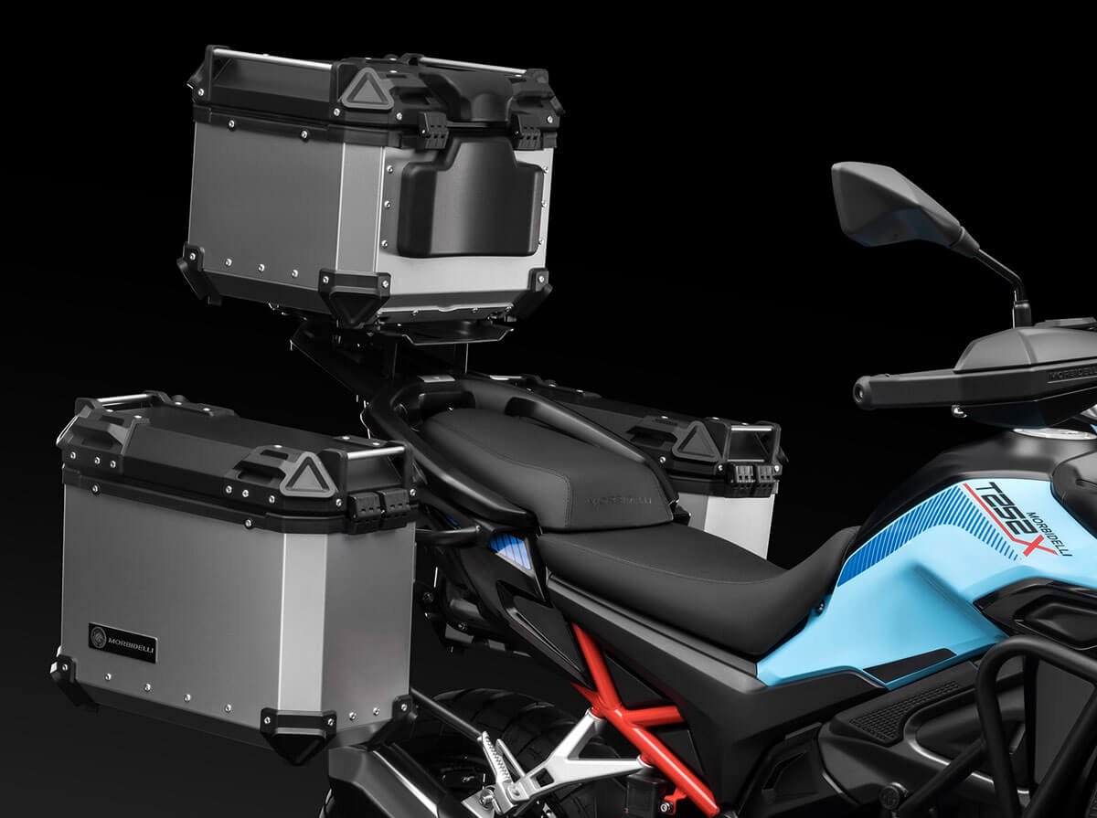 Weighing only 195 kg, the T252X features long-travel suspension (160 mm front / 140 mm rear), Bosch ABS with rear deactivation, spoked wheels with Pirelli tubeless tires, and a vertical TFT dashboard with GPS projection via Morbidelli Connect. Three selectable riding modes (Urban, Touring, Off-Road) adapt the experience to every terrain.